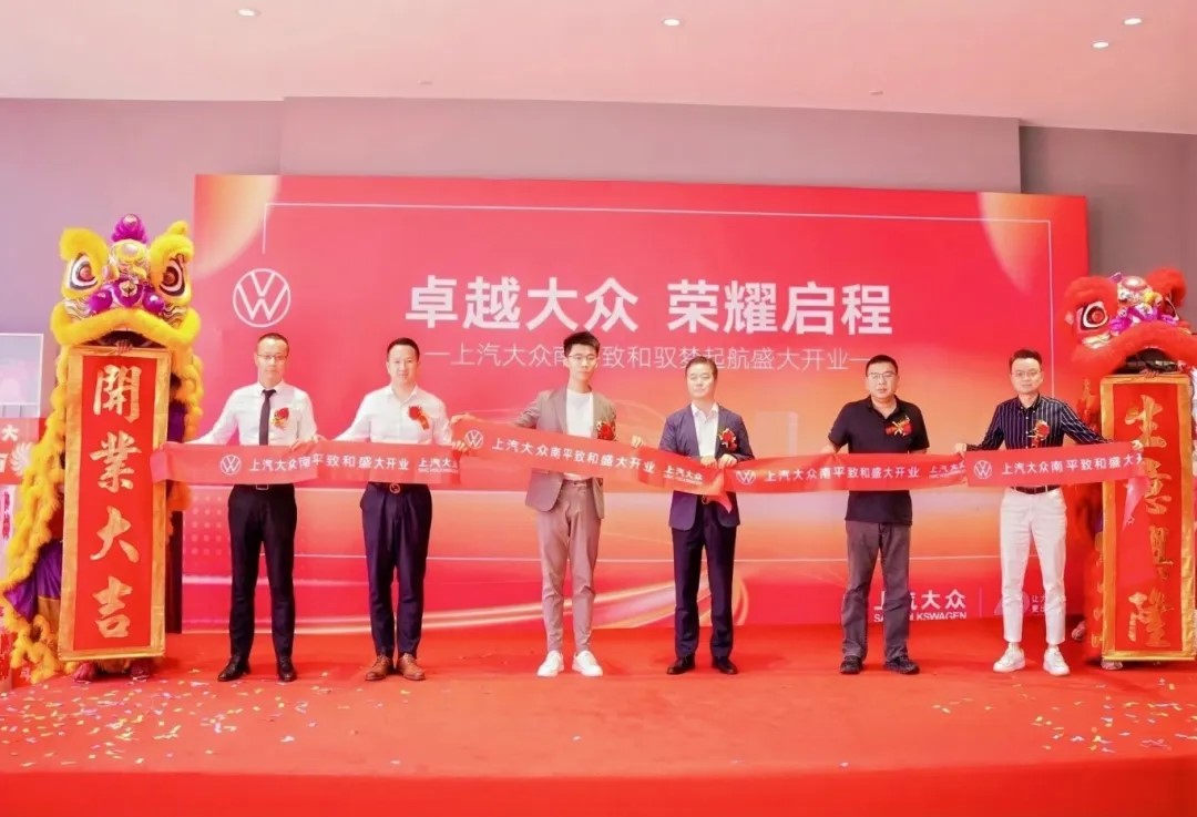 上汽大眾華南區(qū)總經(jīng)理徐子看、盈眾控股集團(tuán)副總經(jīng)理尤猛杰、上汽大眾大眾品牌華南營銷大區(qū)ID營銷副總經(jīng)理張榕、盈眾上汽大眾品牌總監(jiān)王庭要、盈眾業(yè)務(wù)四部總經(jīng)理陳隆龍、南平致和總經(jīng)理許恩華共同為南平致和上汽大眾4S店開業(yè)剪彩。